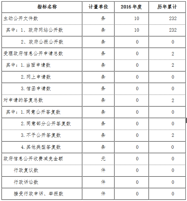 2016年,我局主动公开政府信息10条,全文电子化100%,未发生因政府信息公开的行政复议、行政诉讼情况。