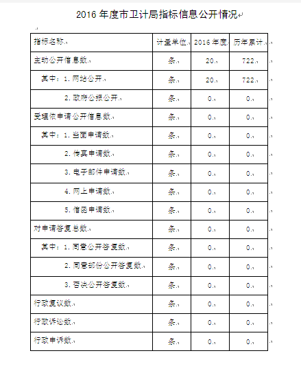 (2)附表:2016年度市卫计局指标信息公开情况