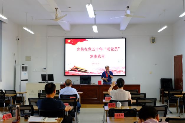 接着,获得“光荣在党50年”纪念章的老同志王健平饱含深情朗读了自己创作的《在党五十年有感》一诗,让青年党员深刻感受到老党员爱党忠党护党的一片深情。最后在鲜红的党旗下,支部书记带领参加活动的全体党员重温入党誓词。参会人员纷纷表示,要终身铭记誓词、践行誓词,树牢忠诚之心、责任之心、敬畏之心,为党校发展贡献力量。