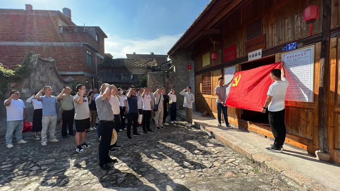市住建系统党员干部在黄淑琮烈士故居前合唱国歌,重温入党誓词,这今日中国定不负先烈之英魂。