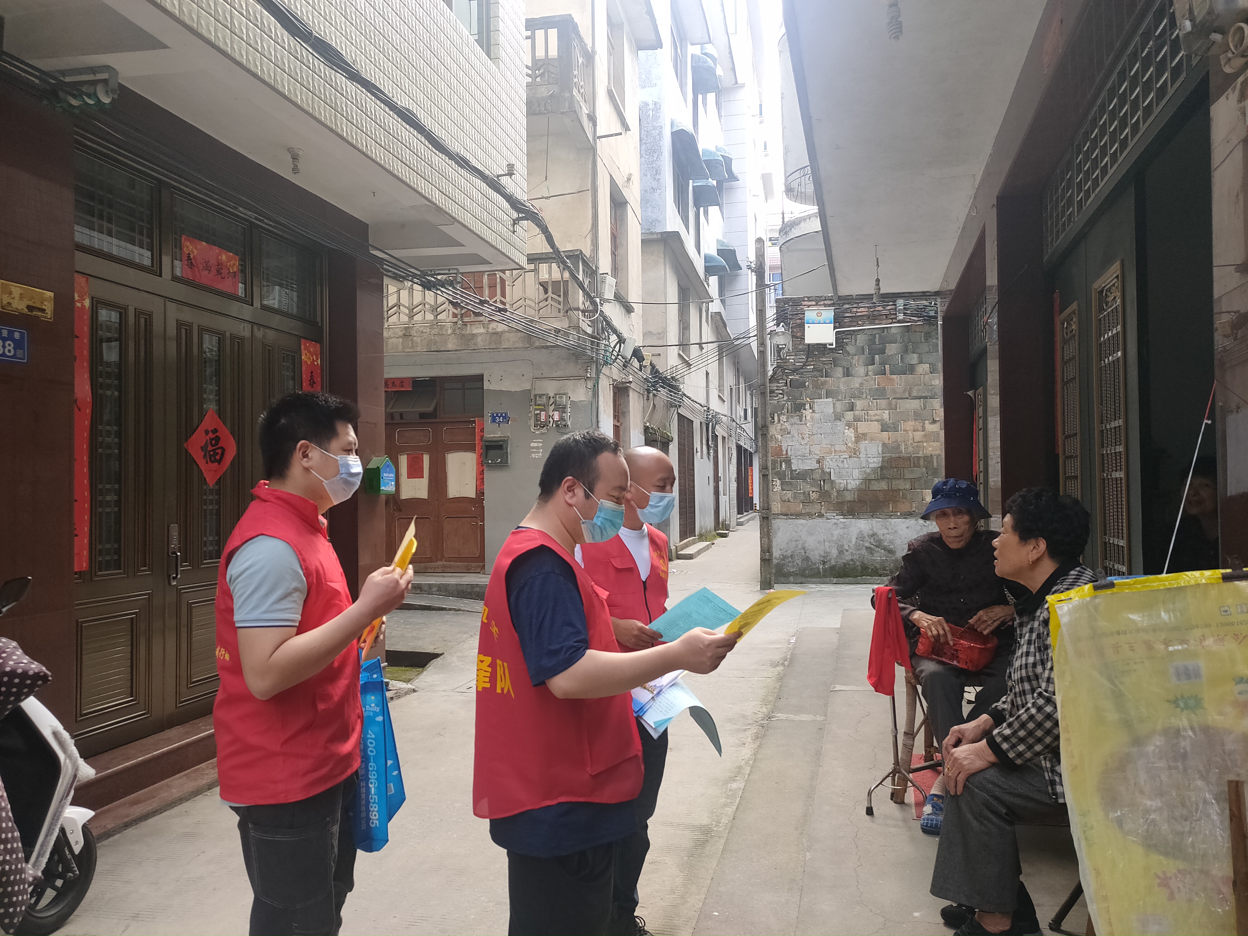 等宣传动员,为市民讲解防疫政策和科学防疫知识,提醒来往的市民戴好口罩,分发
