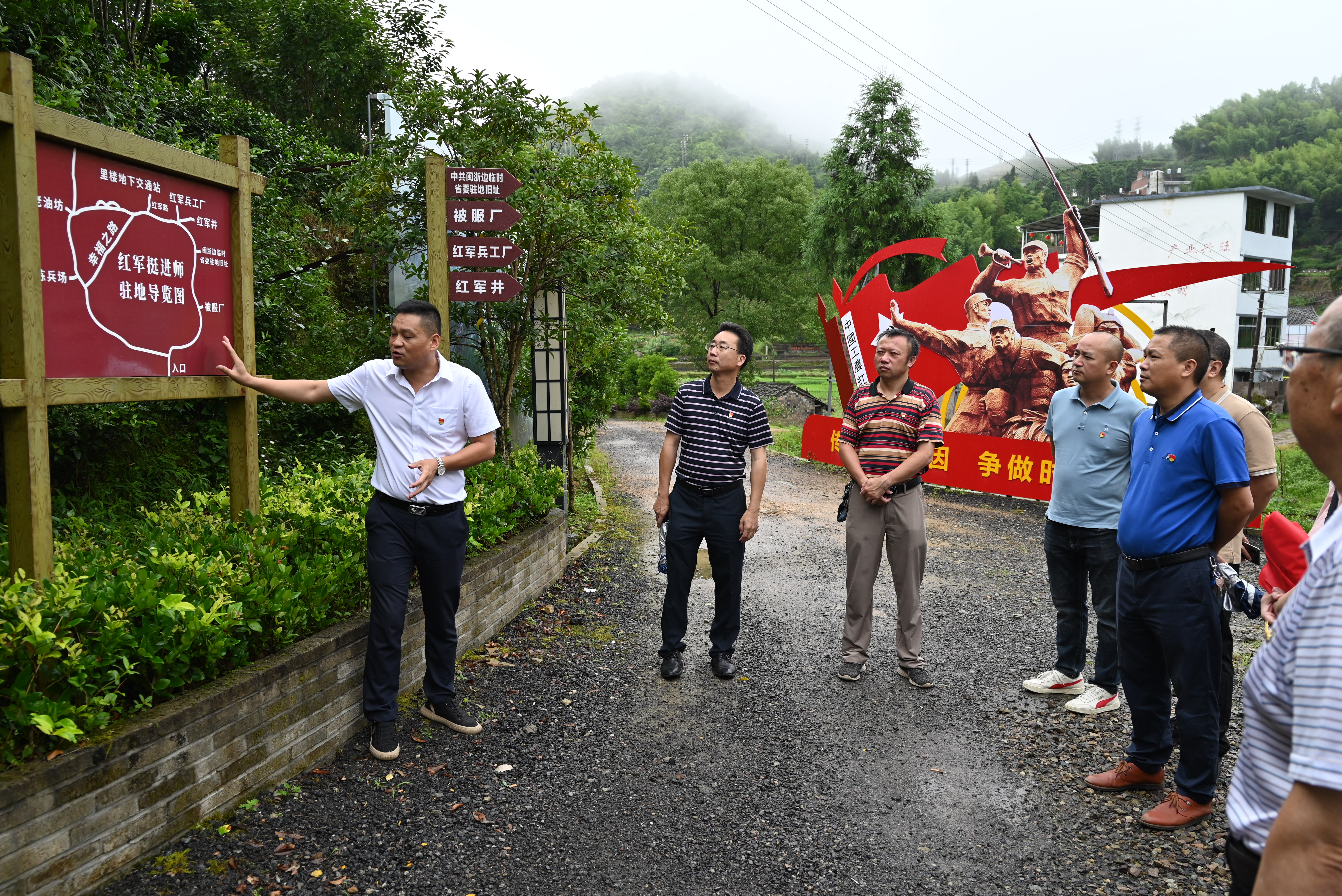 参观中共闽浙边临时省委驻地旧址、红军被服厂、红军兵工厂、里楼地下交通站、龟仔山战役会议旧址。