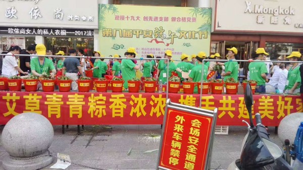 艾草青青,粽香浓浓,传统的端午佳节就要来临了。为更好地弘扬中华民族传统节日的文化内涵,并以传统节日为载体开展惠及民生的党员进社区服务,beat365网页登录_365bet官网备用网站_365betvip桐山街道办事处、十字社区携同市委组织部、编办、市卫计局等单位,于5月26日在人民剧场前的小广场举办了一场主题为“迎接十九大,创先进支部,做合格党员”的第八届平安端午文化节。