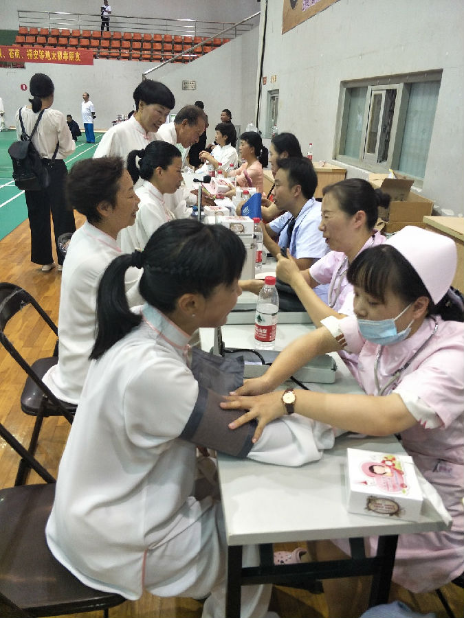 活动现场通过悬挂标语条幅、太极拳展演等形式,结合健康中国和全民健身国家战略、健康素养66条、三减三健、阳光体育、职工体育、妇女健身、自救互救等内容开展了形式多样的健康教育及科学健身主题宣传。