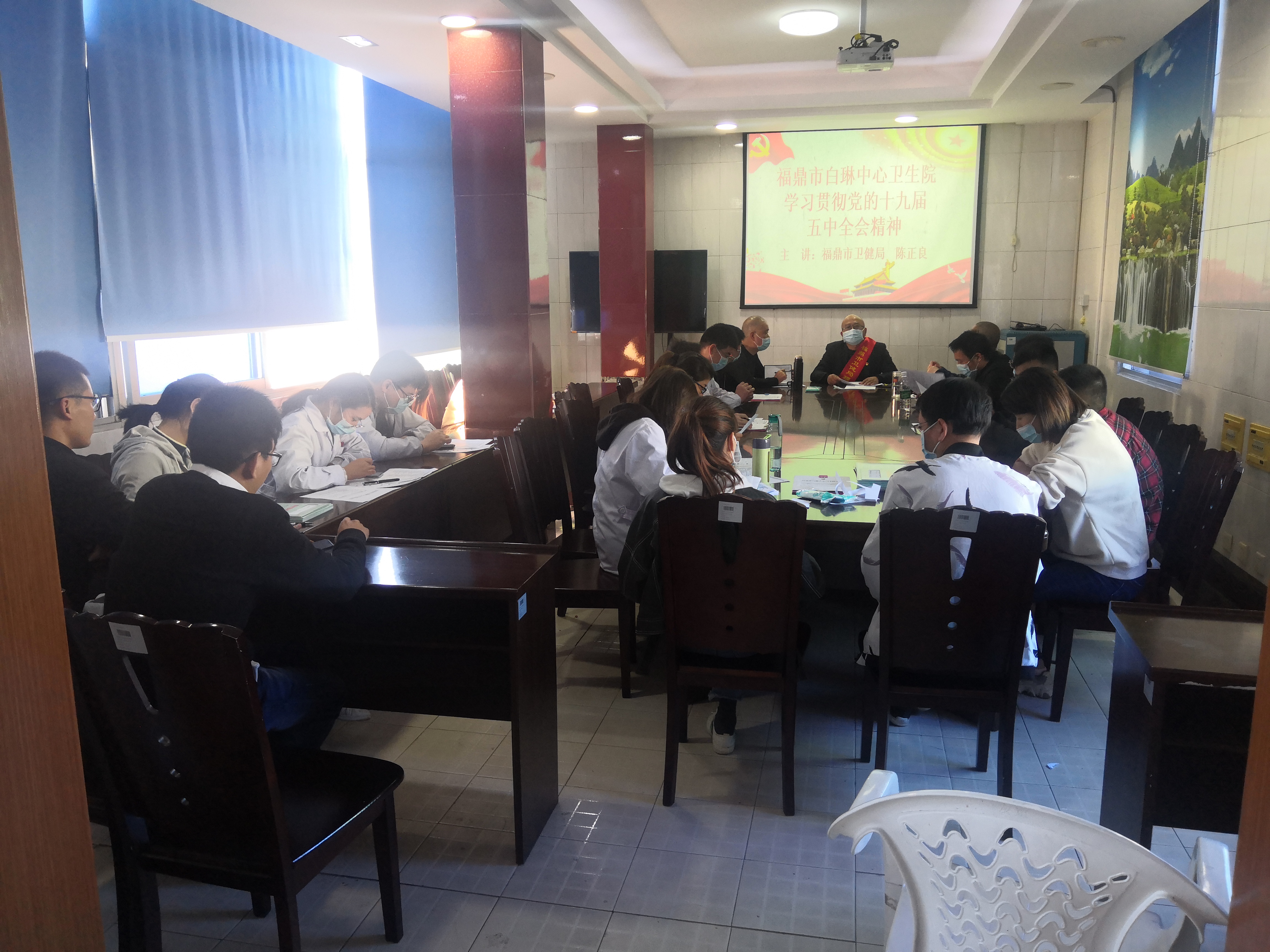 11月11日下午,beat365网页登录_365bet官网备用网站_365betvip卫健局党组成员、副局长陈正良到白琳中心卫生院及白琳翁江茶场社区宣讲党的十九届五中全会精神。