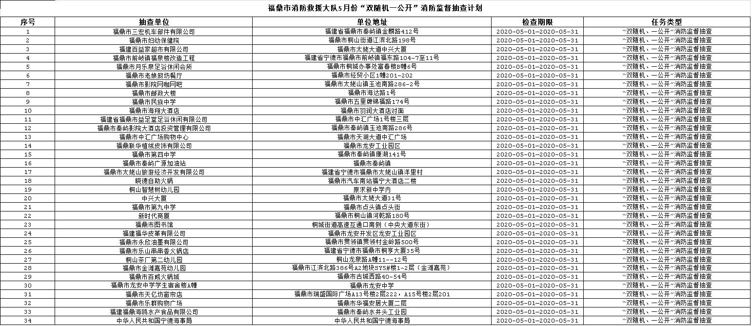 附件:beat365网页登录_365bet官网备用网站_365betvip消防救援大队5月份“双随机一公开” 消防监督抽查计划