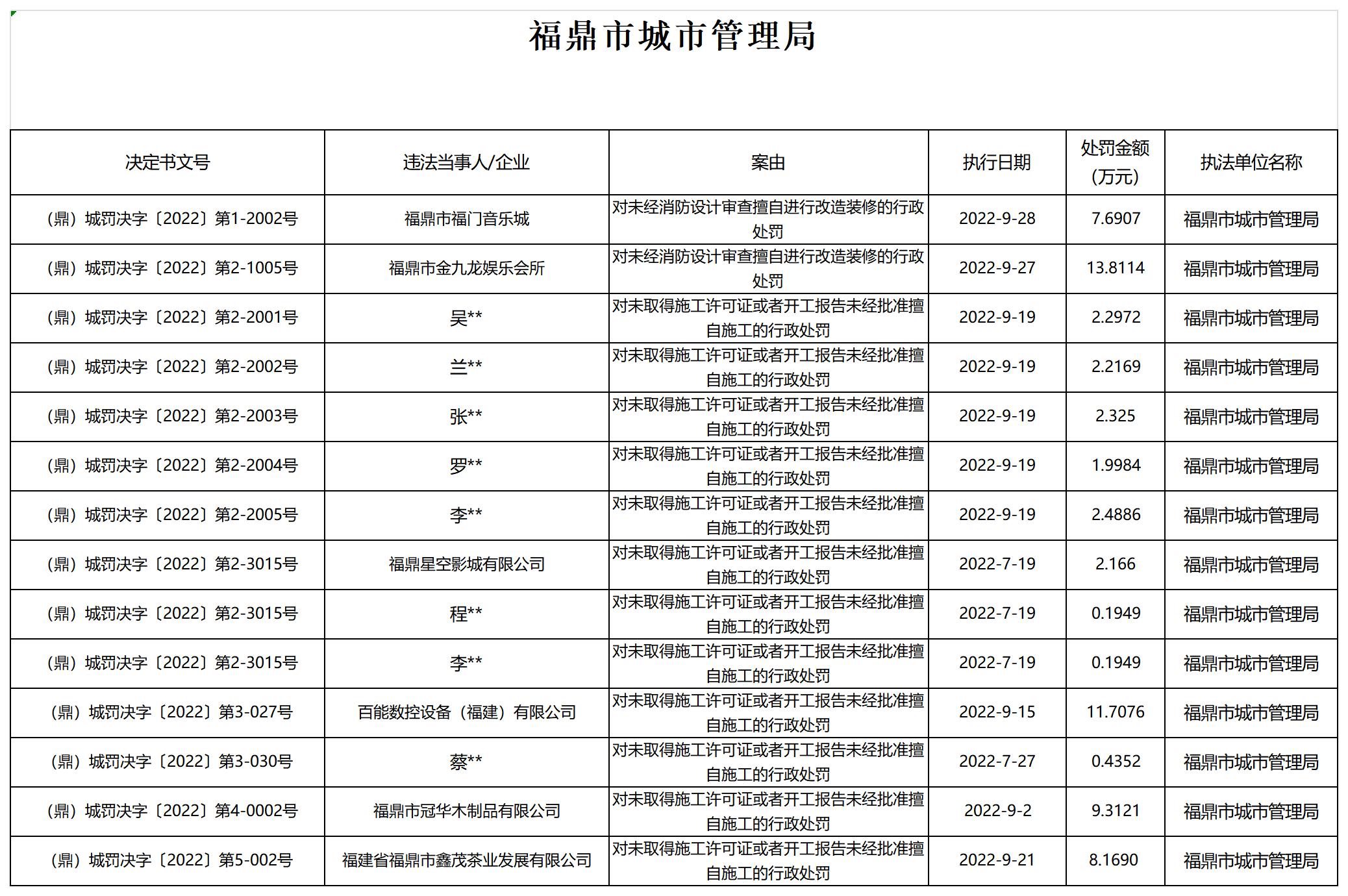 beat365网页登录_365bet官网备用网站_365betvip城市管理局行政处罚信息公示(2022)第三季度