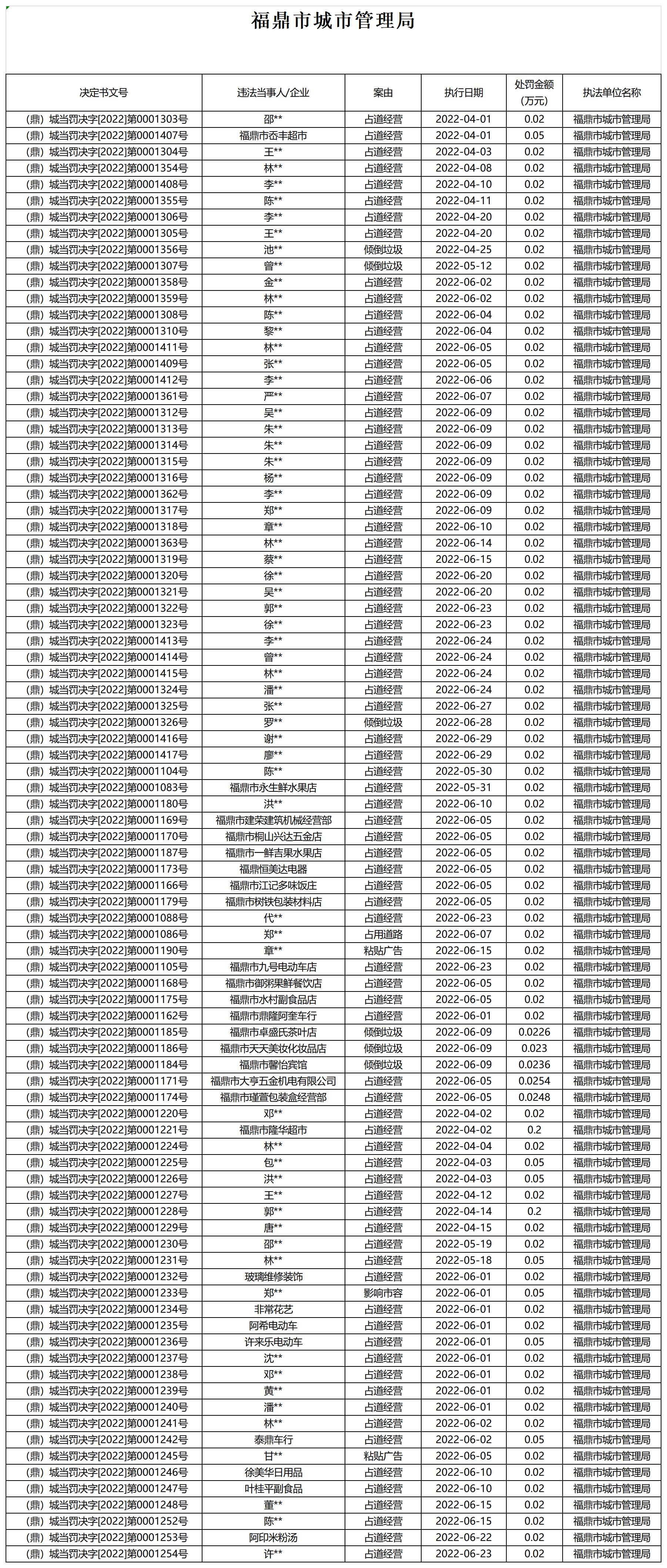 beat365网页登录_365bet官网备用网站_365betvip城市管理局行政处罚信息公示(2022)第二季度
