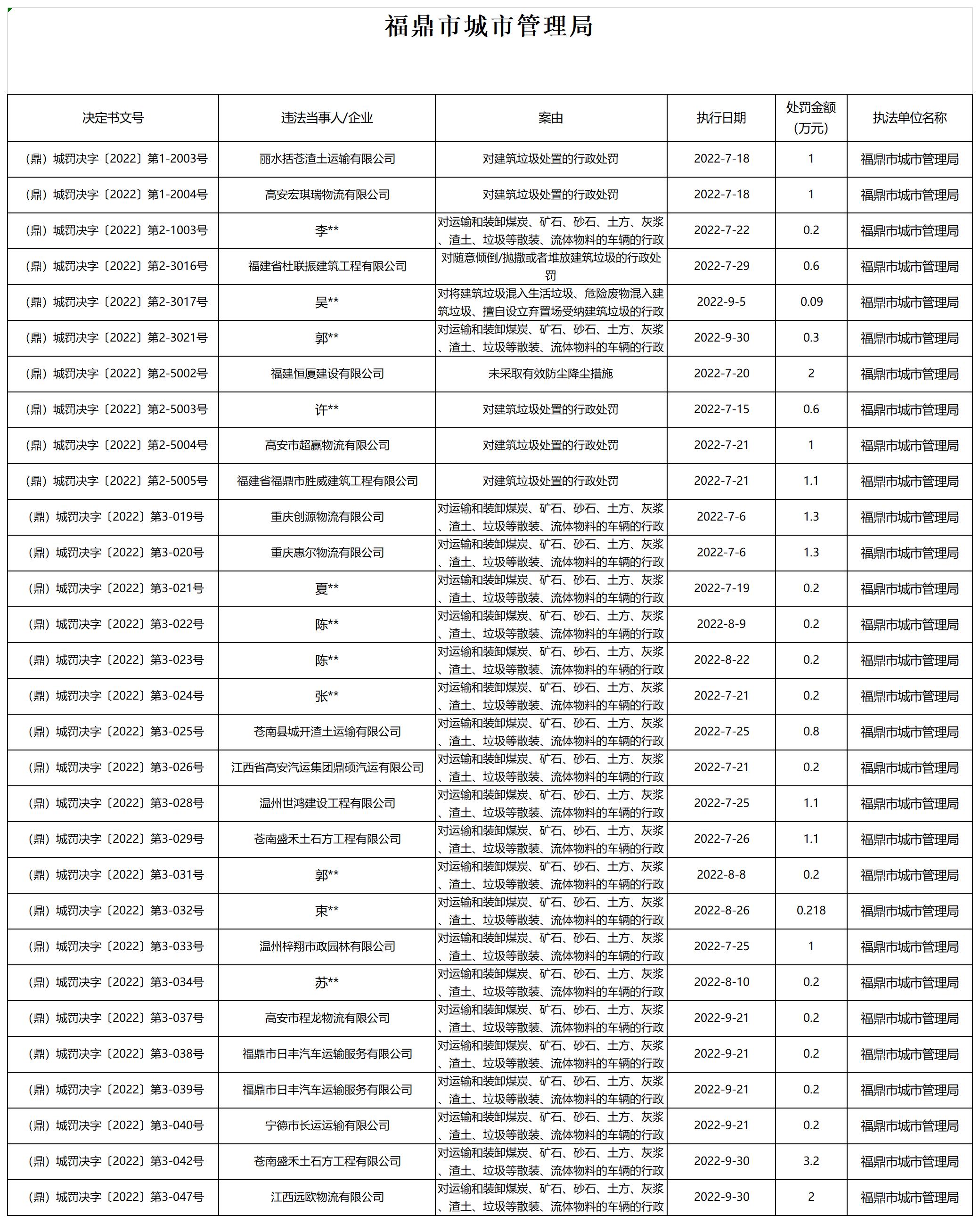 beat365网页登录_365bet官网备用网站_365betvip城市管理局行政处罚信息公示(2022)第三季度