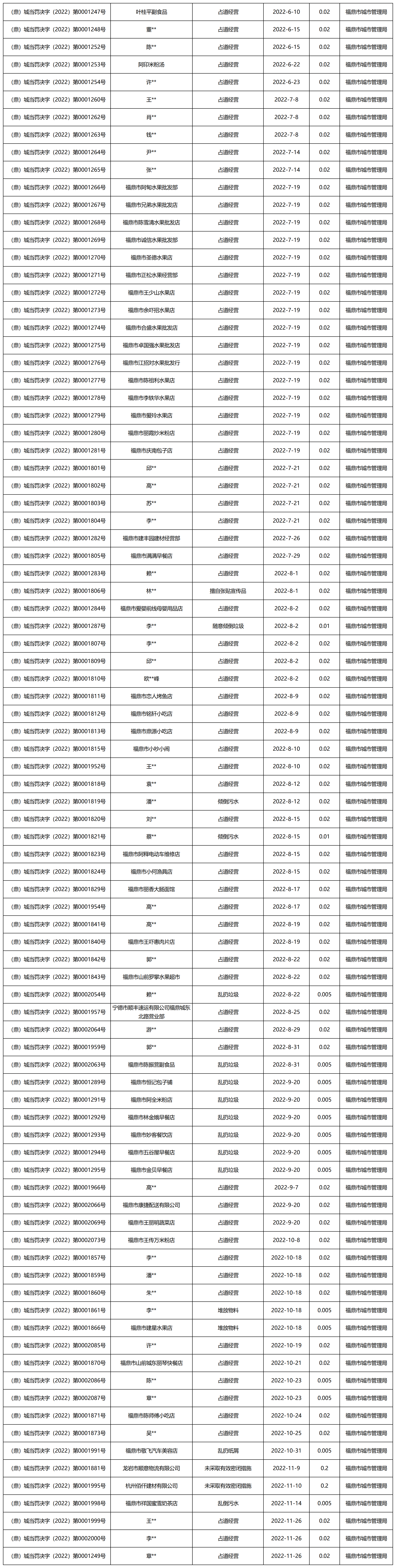 beat365网页登录_365bet官网备用网站_365betvip城市管理局简易处罚信息公示(2022年度)