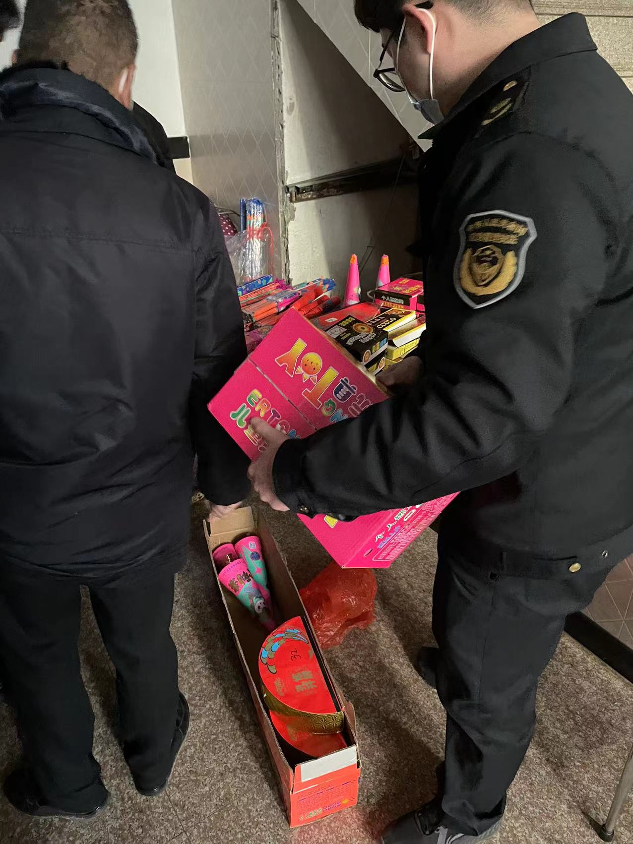在此次执法过程中,发现部分商家抱着侥幸心理,趁着年关将近,在未取得《烟花爆竹零售许可证》及经营许可证的情况下,非法售卖烟花爆竹。本次执法,查处多处烟花爆竹非法销售点,查获非法经营的烟花爆竹制品百余件,均依法予以没收销毁。
