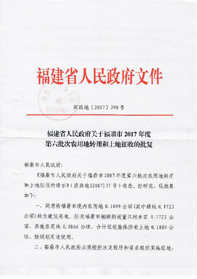 福建省人民政府关于beat365网页登录_365bet官网备用网站_365betvip2017年度第六批次农用地转用和土地征收的批复