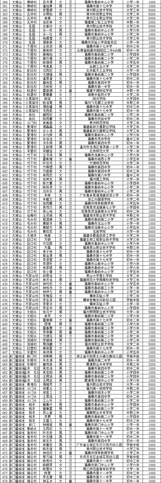 根据《福建省教育厅 中共福建省委农村工作领导小组办公室 福建省财政厅 福建省民政厅 福建省人力资源和社会保障厅 福建省残疾人联合会关于做好建档立卡等家庭经济困难学生精准资助工作的通知》(闽教财〔2016〕47号)、《beat365网页登录_365bet官网备用网站_365betvip人民政府关于印发beat365网页登录_365bet官网备用网站_365betvip建档立卡贫困家庭子女教育帮扶实施意见的通知》(鼎政综〔2017〕186号)文件精神,现将beat365网页登录_365bet官网备用网站_365betvip2021年秋季建档立卡子女教育帮扶资金予以公示,公示时间从2021年12月6日至2021年12月10日,公示期为五个工作日,在此期间内,如有异议,请在公示期间内向beat365网页登录_365bet官网备用网站_365betvip教育局反映。