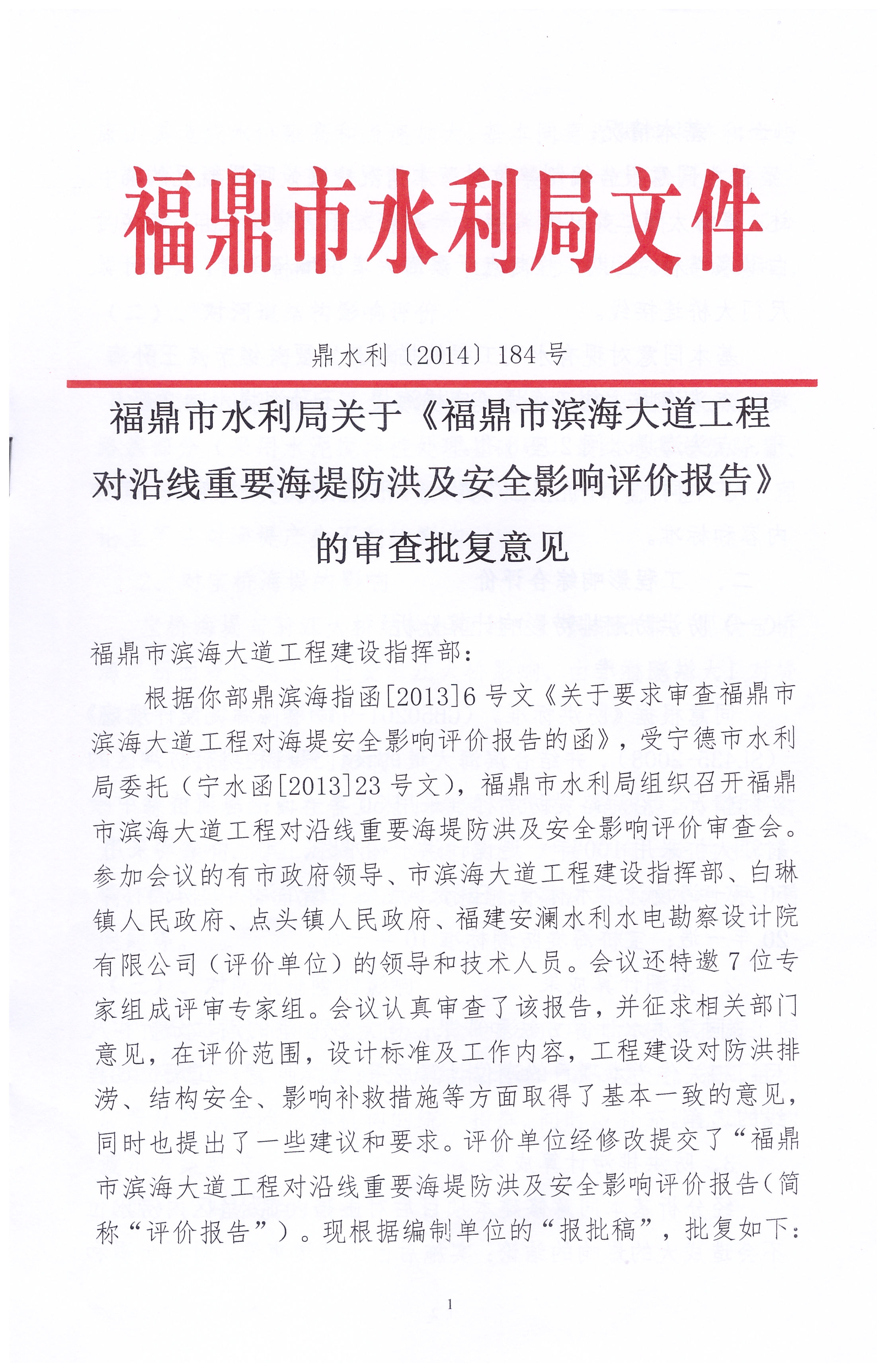 beat365网页登录_365bet官网备用网站_365betvip水利局关于《beat365网页登录_365bet官网备用网站_365betvip滨海大道工程对沿线重要海堤防洪及安全影响评价报告》的审查批复意见