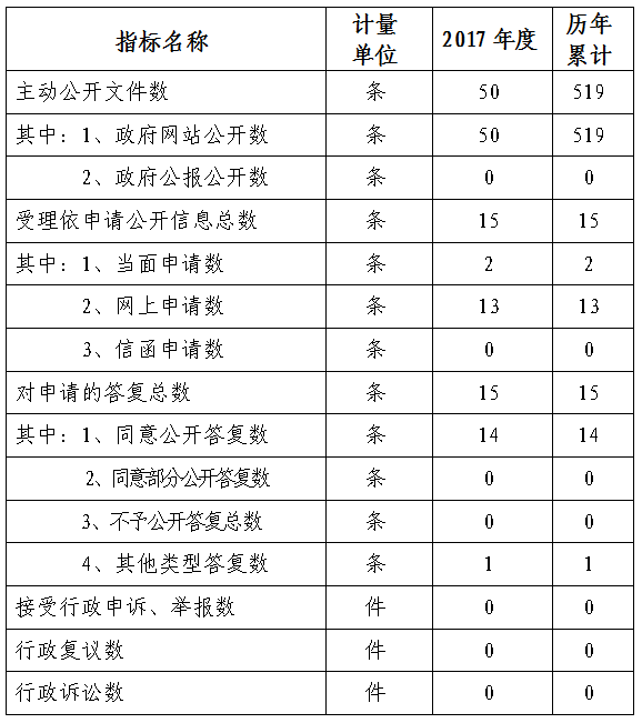 我局2017年全年主动公开政府信息50条,历年累积519条。