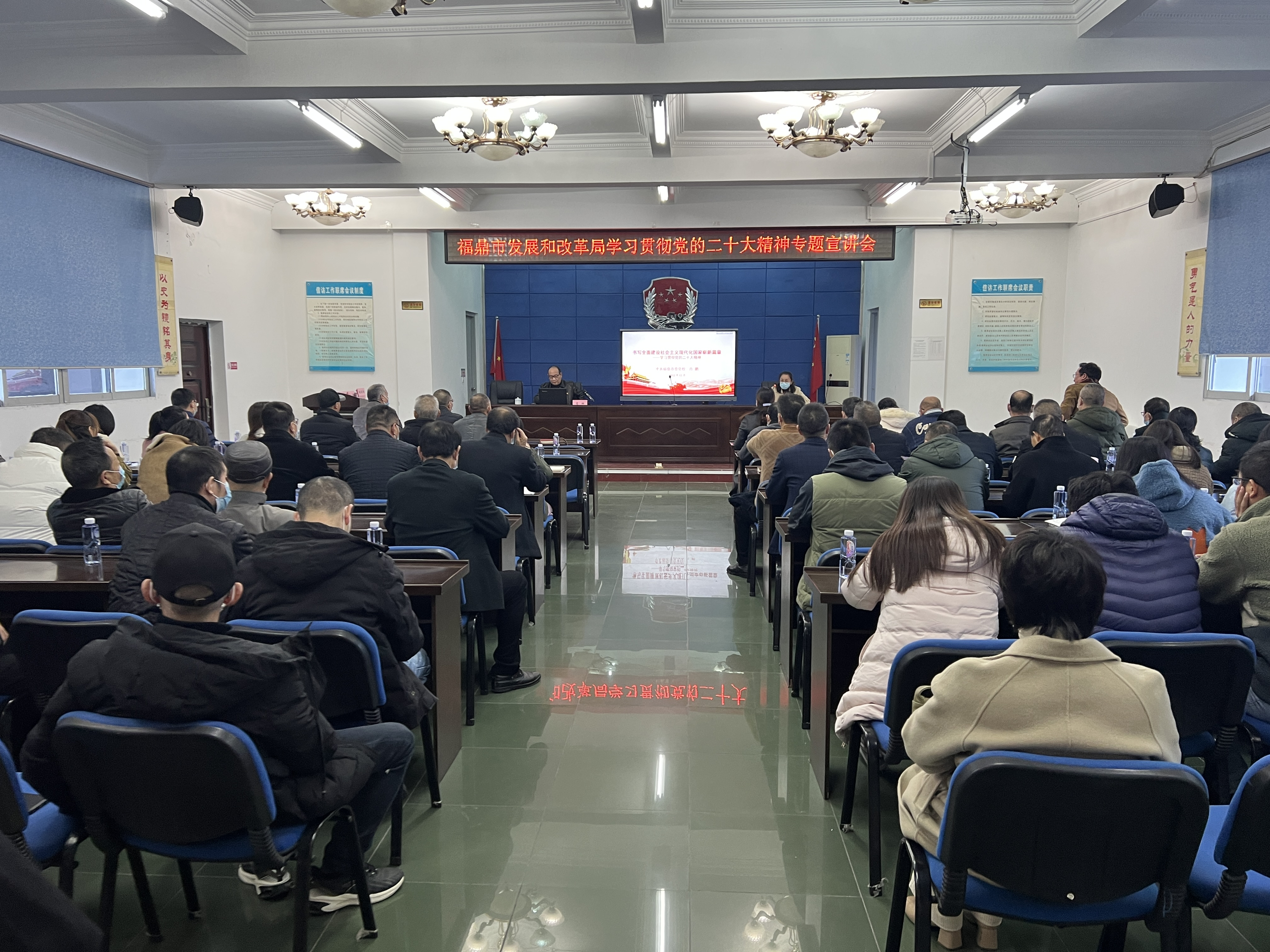 12月12日下午,为全面贯彻落实党的二十大精神,推动全局干部把思想和行动统一到大会精神上来,我局举行学习贯彻党的二十大精神专题宣讲会,邀请beat365网页登录_365bet官网备用网站_365betvip委党校常务副校长肖鹏作专题宣讲报告,发改局党组副书记、副局长郑莉达主持会议。