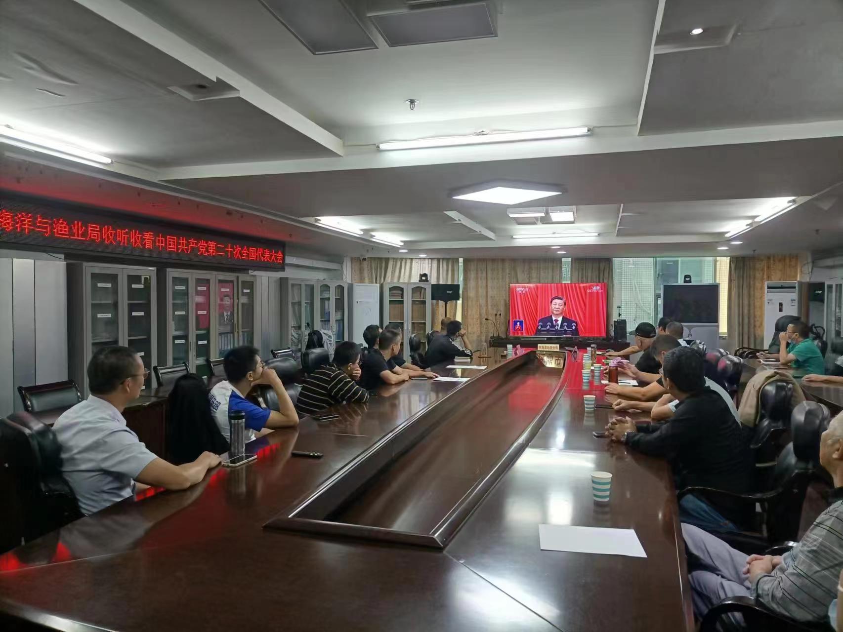 10月16日上午,中国共产党第二十次全国代表大会隆重召开,beat365网页登录_365bet官网备用网站_365betvip海洋与渔业局组织全体党员干部收听收看开幕会,认真聆听习近平总书记代表十九届中央委员会向大会作的报告。局机关支部、大队支部、退休支部党员集中收听收看,其余干部以多种形式进行收听收看并拍照存档。