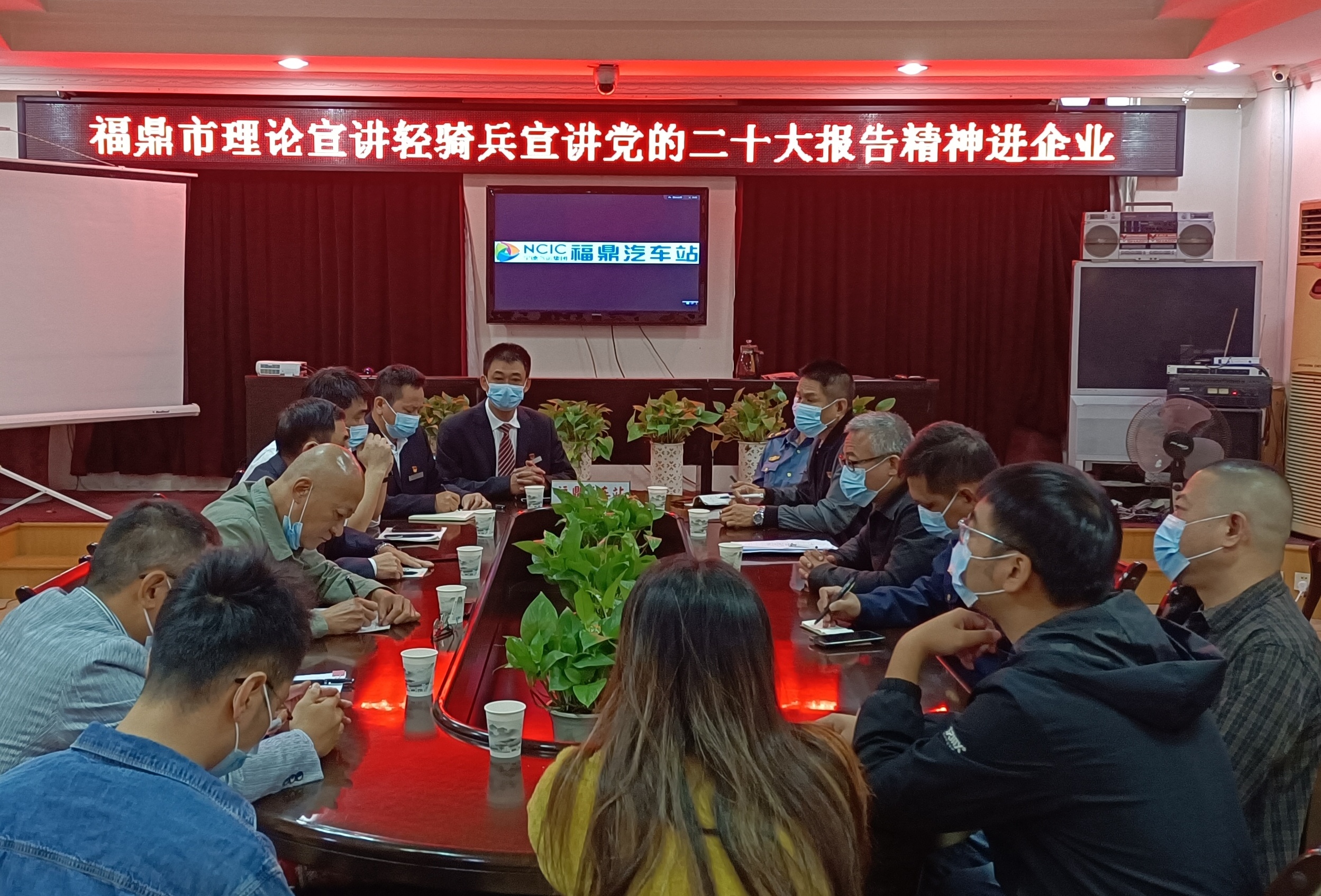 按照beat365网页登录_365bet官网备用网站_365betvip委宣传部通知要求,beat365网页登录_365bet官网备用网站_365betvip交通运输局机关党委第一时间在基层营造学习宣传党的二十大报告精神浓厚氛围,推动党的二十大报告精神深入基层一线。10月19日上午局机关党委组织交通运输事业发展中心支部党员、交通运输行政综合执法大队支部党员走进运输企业福鼎汽车站宣传宣讲党的二十大报告精神。党委委员叶怀树以牢记“三个务必”奋力谱写新时代更加绚丽华章为主题开展宣讲。