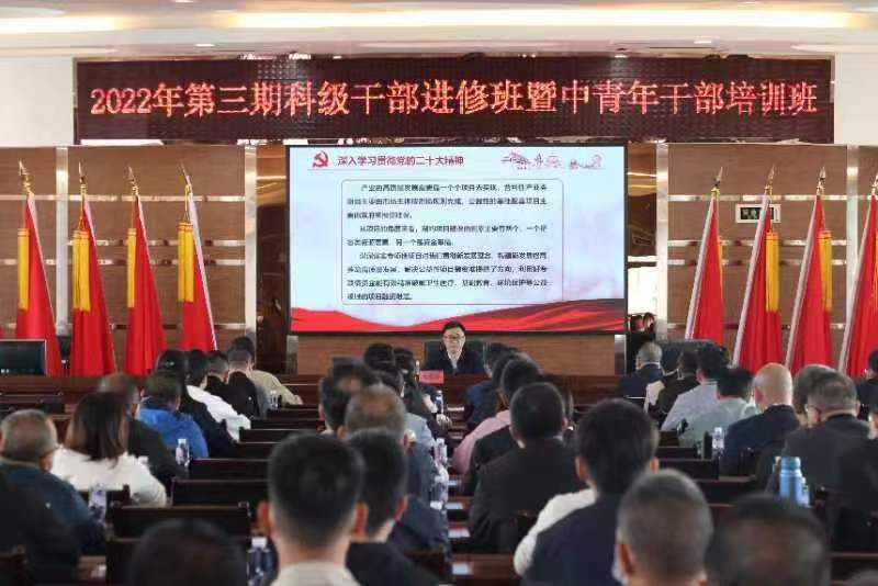 10月19日,市委副书记、市长周春海以《深入学习贯彻党的二十大精神,抢抓机遇、谋深谋实,全方位推动专项债项目建设提速增效,助力我市经济社会高质量发展》为题,为中共beat365网页登录_365bet官网备用网站_365betvip委党校2022年第三期科级干部暨中青年干部培训班学员、市政府办党员干部以及市委党校(行政学校)教职工讲授专题党课;市委常委、组织部部长林丽凤主持。