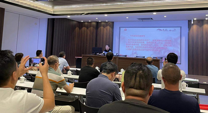 党日活动的第三站,在茶廉文化研学基地,党员干部们在解说员的带领下,参观了清风茶室、茶廉文化长廊等展区,通过回顾茶廉文化的历史渊源,深入了解中国白茶传统文化的同时,也接受了一次深刻的茶廉文化教育。在茶廉文化研学基地,太姥山管委会党委副书记陈诗雄还现场为参加活动的全体党员干部上了一堂“加强作风建设,注重道德操守”的专题党课,使党员们深受教育。