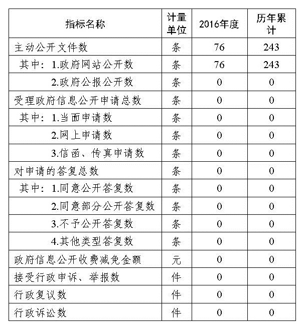 (一)主动公开政府信息的情况。我乡2016年主动公开的政府信息共76条,受理依申请公开政府信息0件,无发生复议、提起诉讼情况。