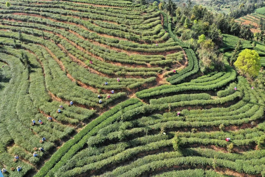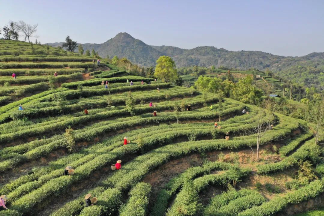 2月28日下午,在该生态茶园基地看到,一排排错落有致的茶树顺着山势绵延起伏、郁郁葱葱,一行行茶树抽芽吐绿、生机盎然,空气里弥漫着淡淡的茶香。20多位采茶工人三三两两分布在茶山中,身挎茶篓,手指在茶树间不停地翻飞,娴熟地采摘着今年的第一茬嫩芽,茶园里呈现出一派早春采茶忙的景象。