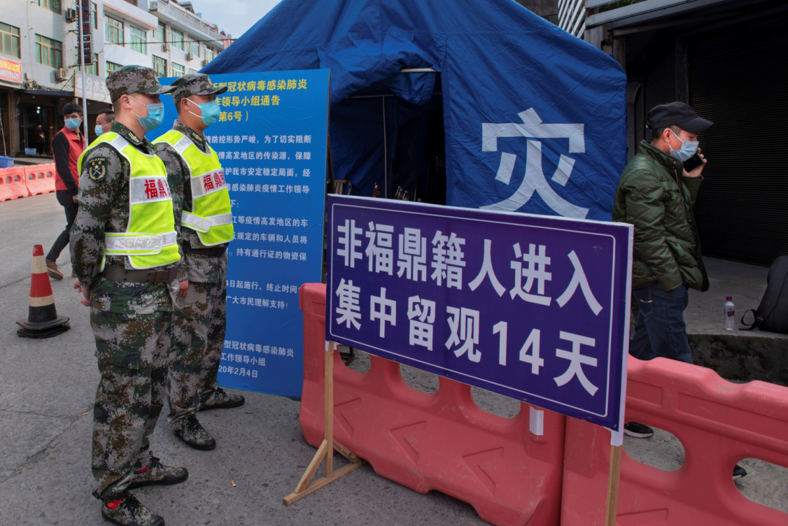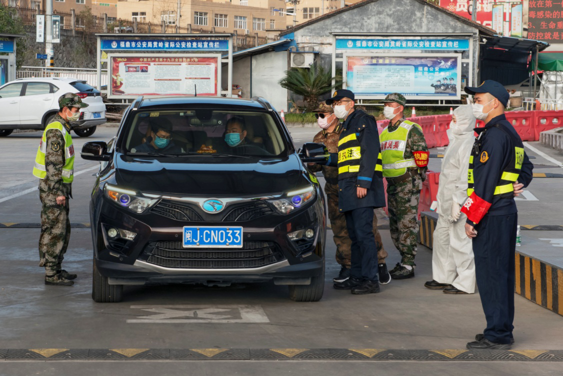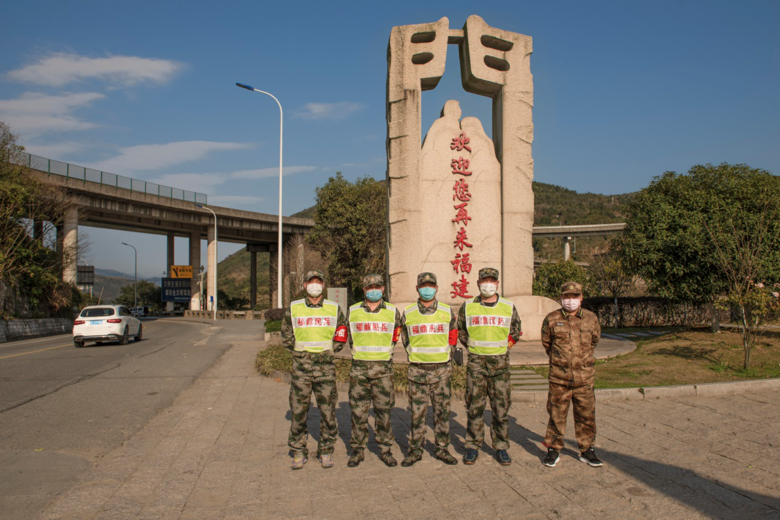 从2020年2月1日起,福建"北大门"福鼎分水关,属地贯岭镇民兵闻令而动,挺身而出,担当“疫”线“守门员”(2月21日摄)