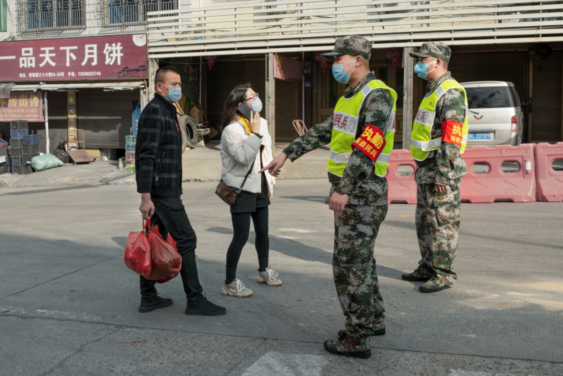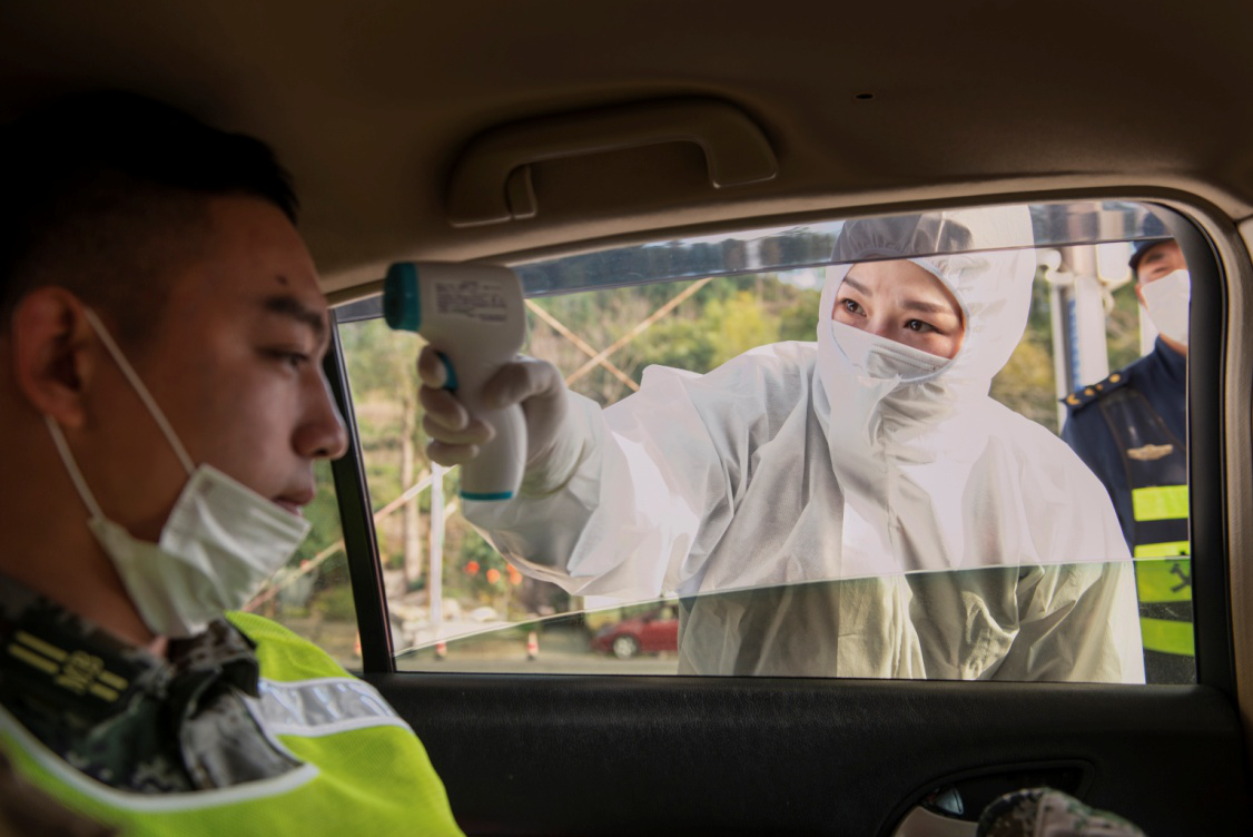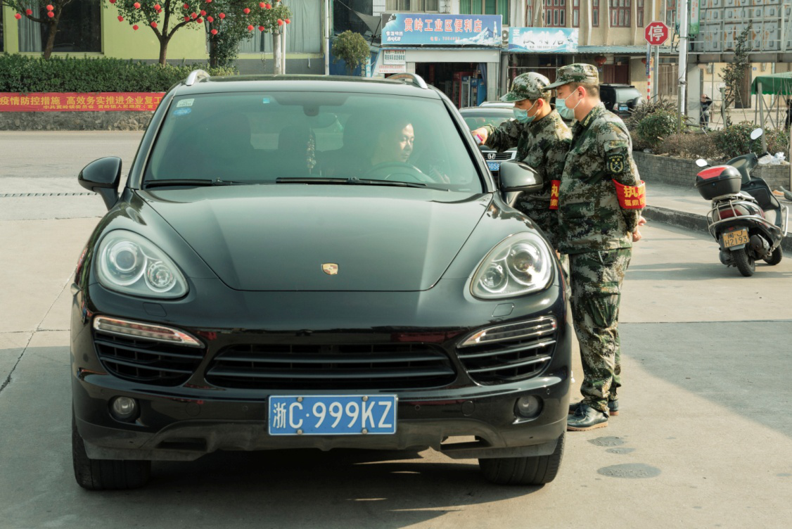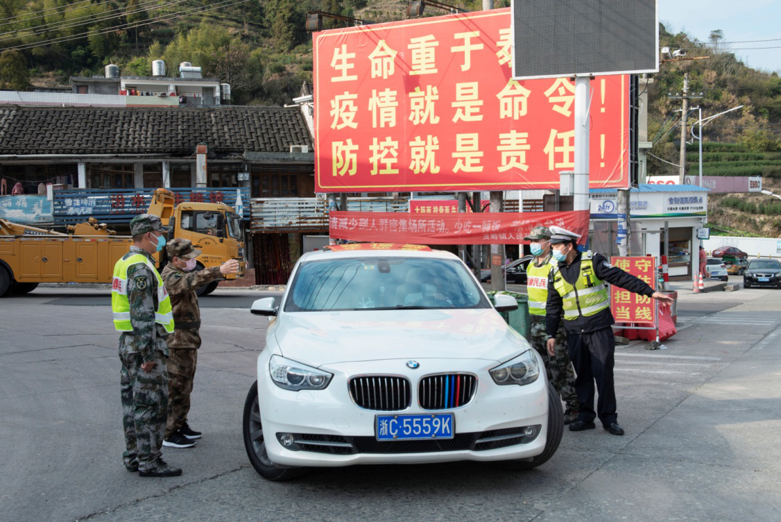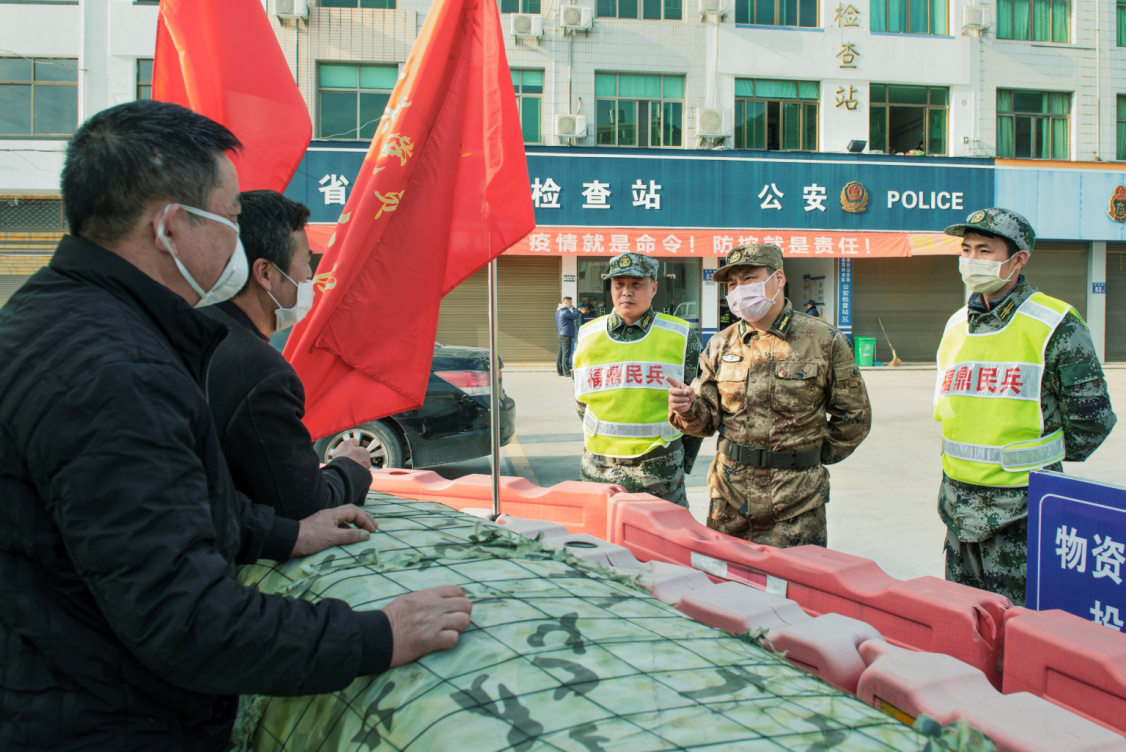 2020年2月21日,民兵王其健和战友,在分水关用当地方言,对来往村民进行身份确认,严防外籍人员入关。