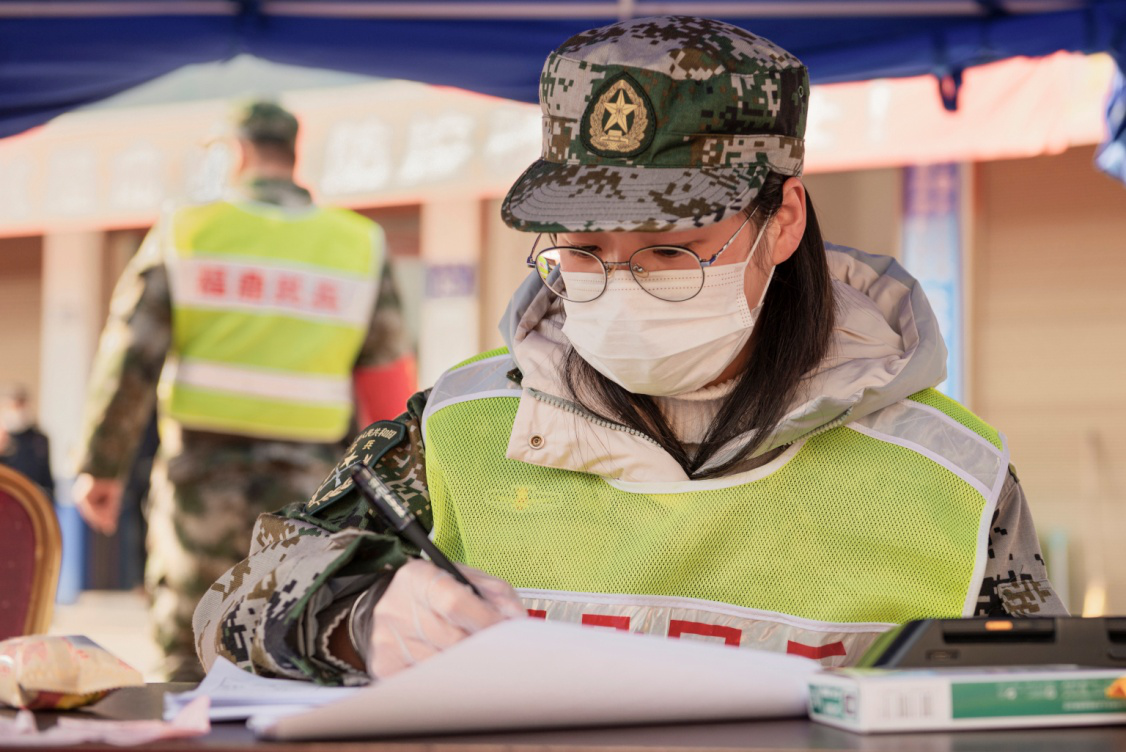 2020年2月21日,一直坚守在省际检查站的女民兵蔡淑婷胆大心细,认真排查登记入闽车辆及乘员信息。