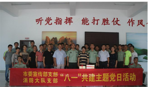 7月30日,市委宣传部党支部与市消防大队党支部开展“八一共建”主题党日活动,来自市委宣传部的机关干部向消防官兵们赠送《习近平新时代中国特色社会主义思想三十讲》等学习资料,勉励消防官兵战士们好好学习,将知识转化为实践技能,为我市发展做更突出贡献。市委常委、宣传部部长姚双霞以普通党员身份参加了此次活动。