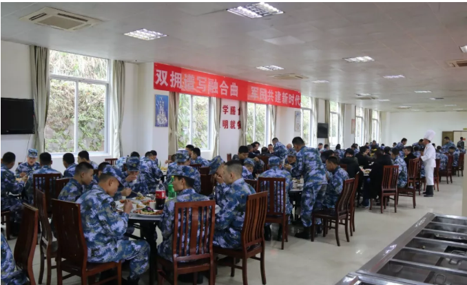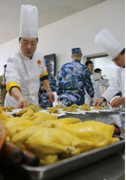 大厨们各展身手,让餐桌上出现琳琅满目的佳肴:娇艳甘甜的红烧猪蹄、新鲜美味的清蒸大虾、嫩滑不腻的粽子扣肉、酸甜可口的糖醋鱼、拼盘大墨鱼、酸辣海参汤、肉嫩膏满的冷盘螃蟹、喷香微辣的白切鸡、肉酱拌面……一道道熟悉的福鼎佳肴热气腾腾地呈现在部队官兵的餐桌前,为驻鼎海军数百名官兵献上了一场“腹满情暖”的冬日盛宴。