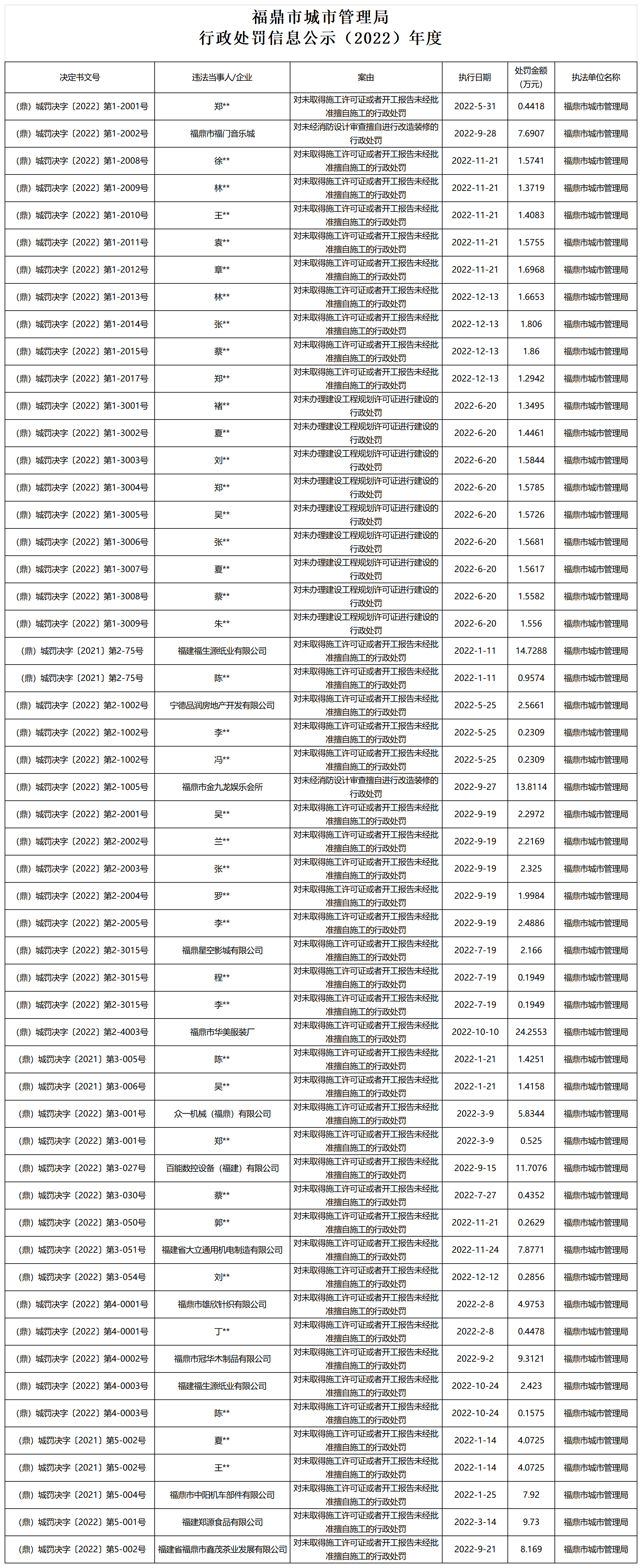 beat365网页登录_365bet官网备用网站_365betvip城市管理局行政处罚信息公示(2022年度)
