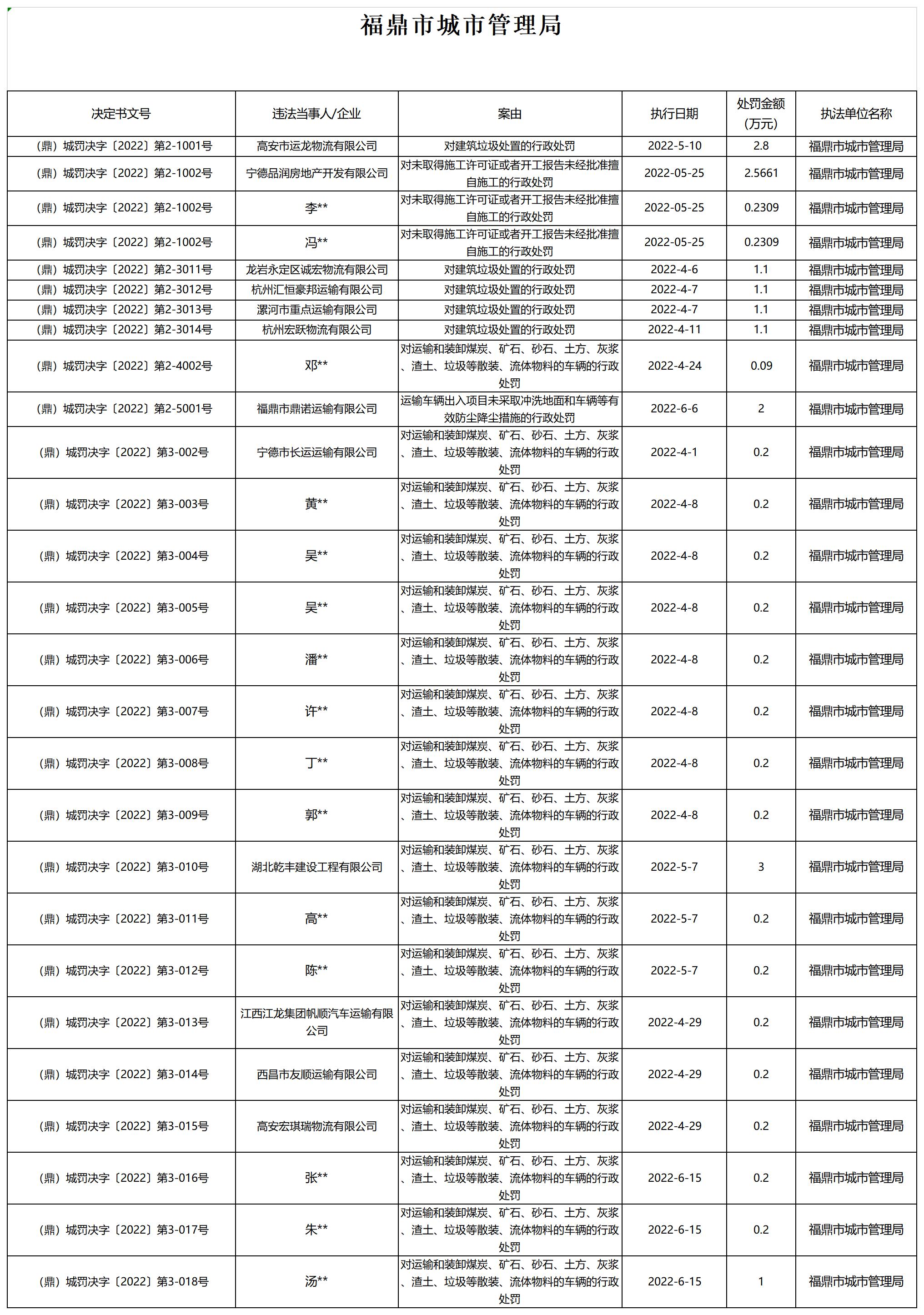 beat365网页登录_365bet官网备用网站_365betvip城市管理局行政处罚信息公示(2022)第二季度