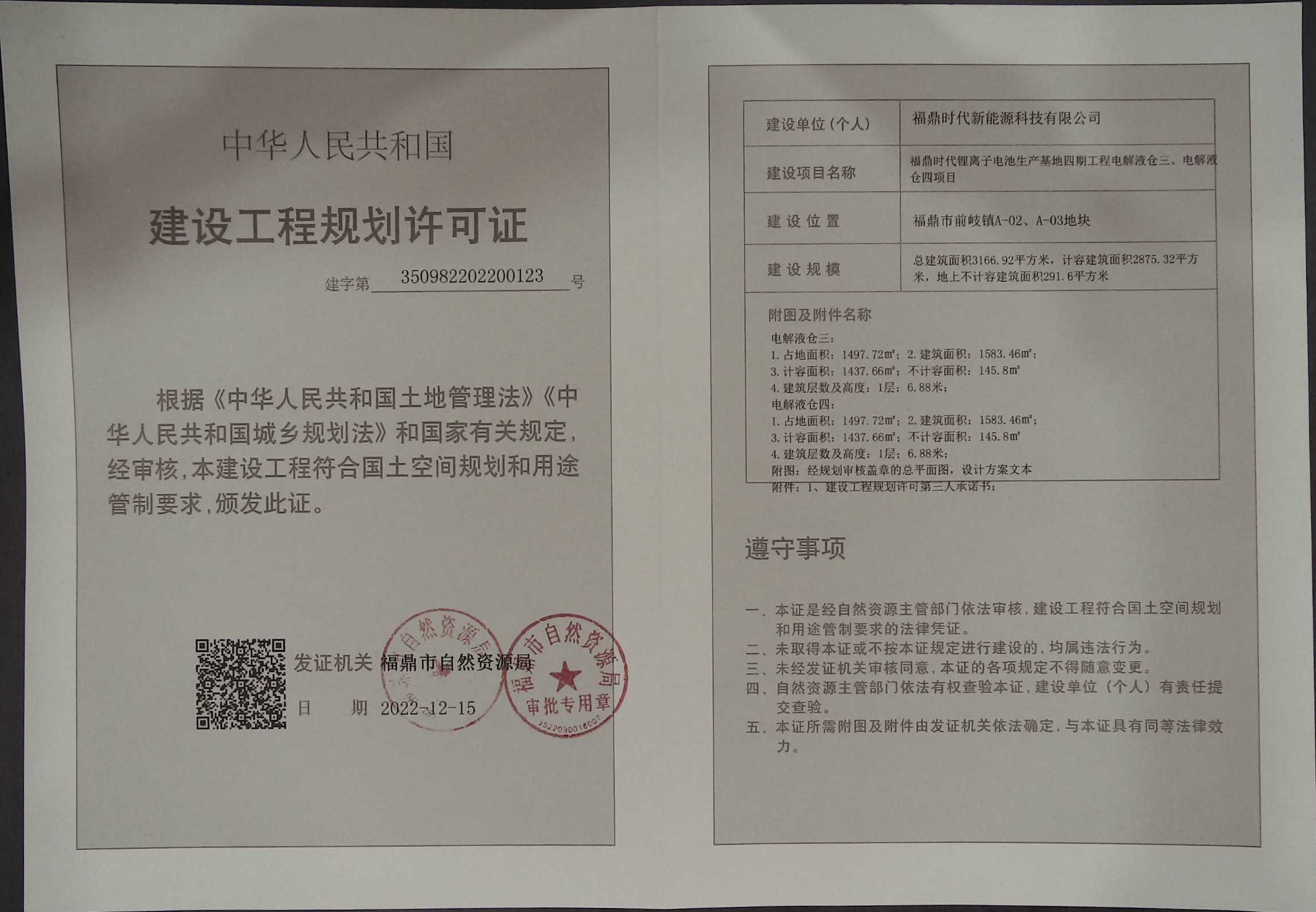 福鼎时代锂离子电池生产基地四期工程电解液仓三、电解液仓四项目