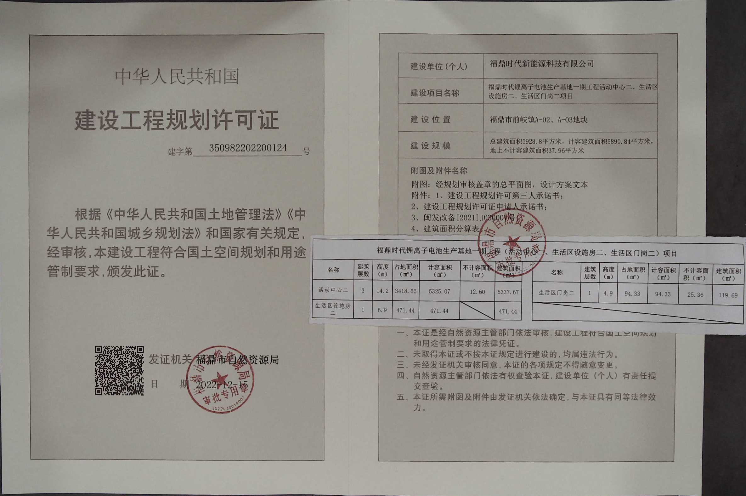 福鼎时代锂离子电池生产基地一期工程活动中心二、生活区设施房二、生活区门岗二项目