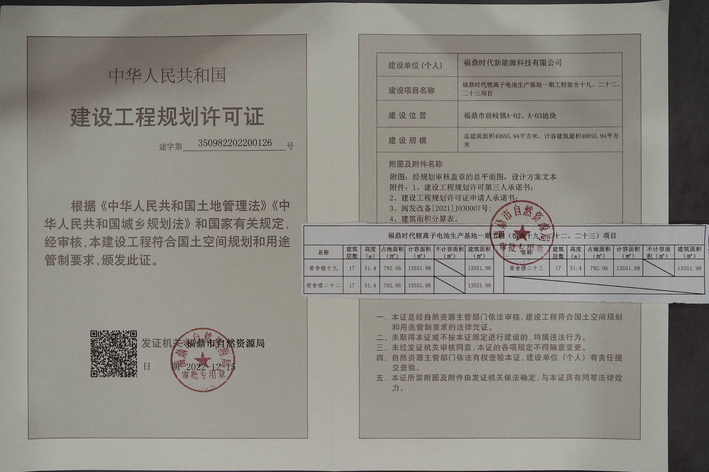 福鼎时代锂离子电池生产基地一期工程宿舍十九、二十二、二十三项目