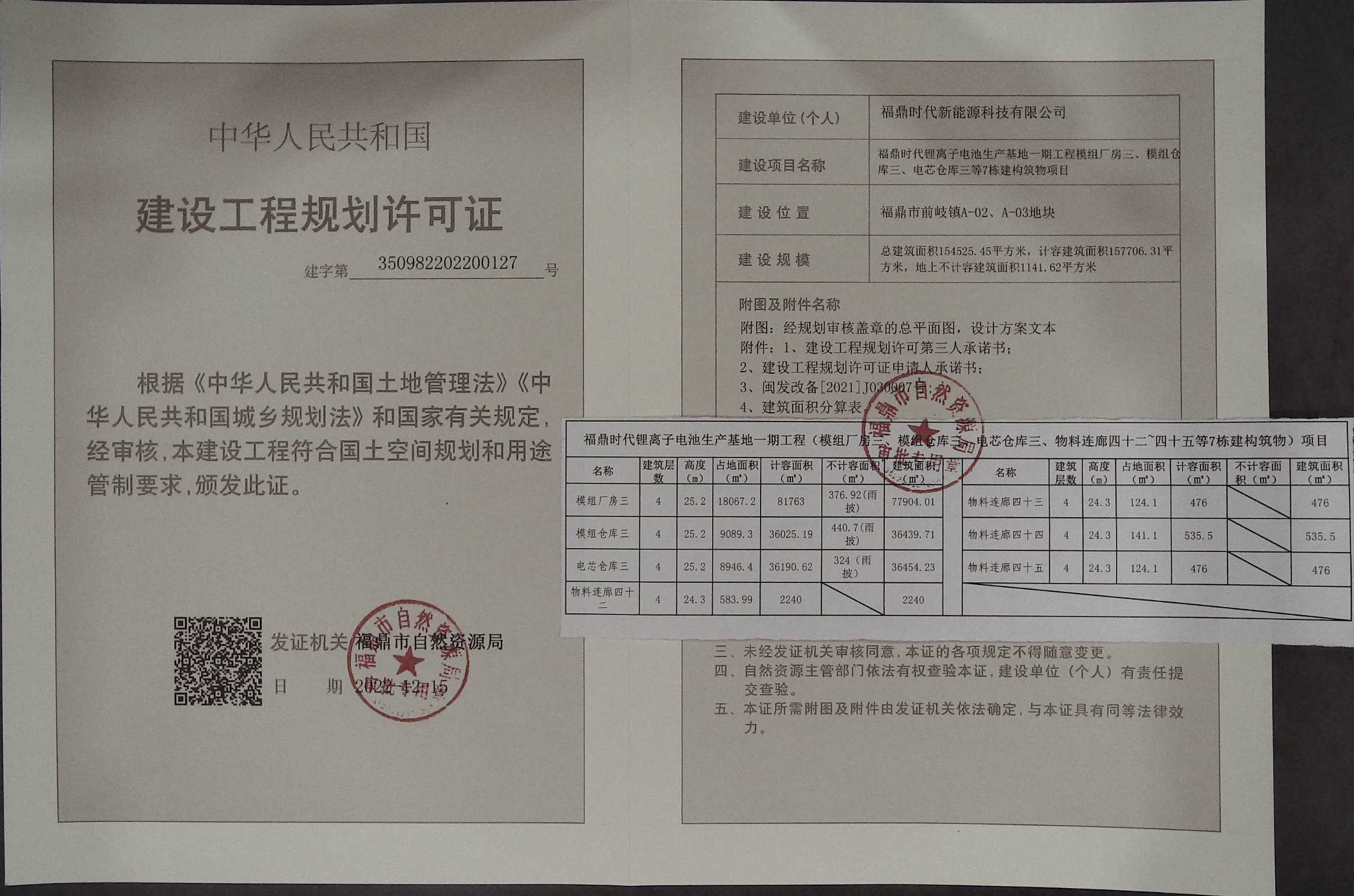 福鼎时代锂离子电池生产基地一期工程模组厂房三、模组仓库三、电芯仓库三等7栋建构筑物项目