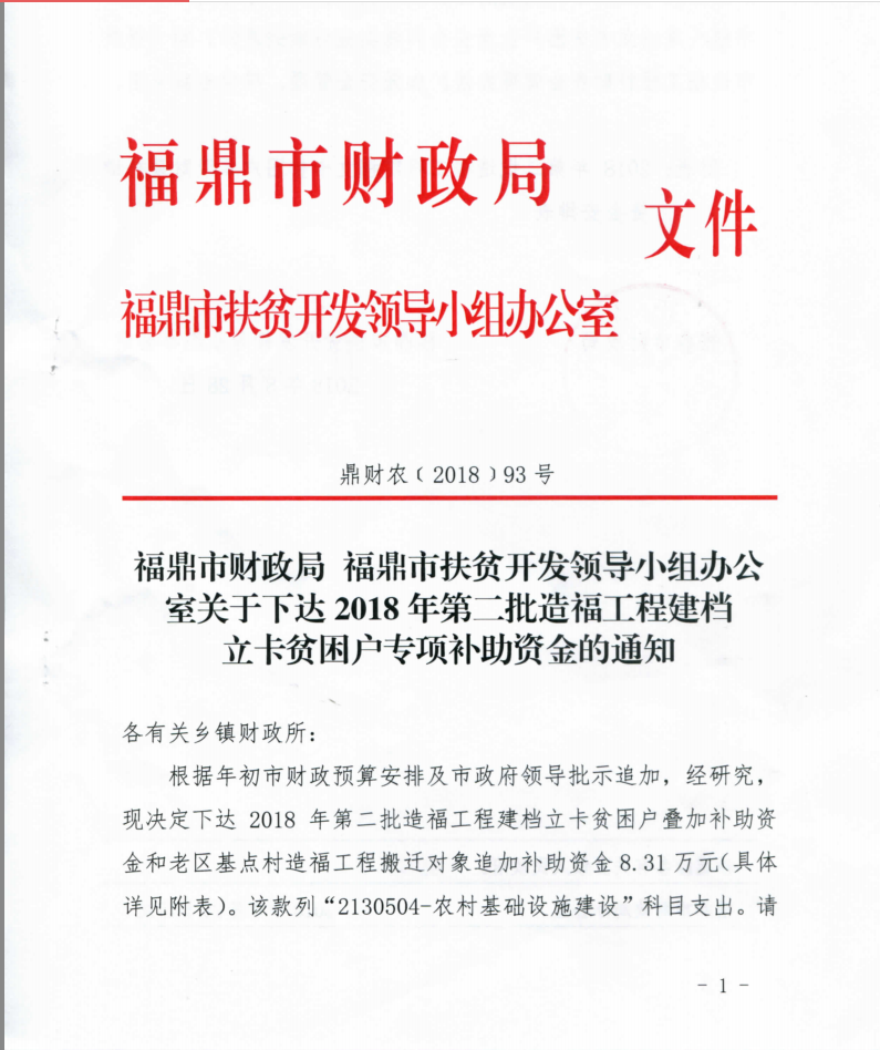 鼎财农〔2018〕93关于下达2018年第二批造福工程建档立卡贫困户专项补助资金的通知.pdf
