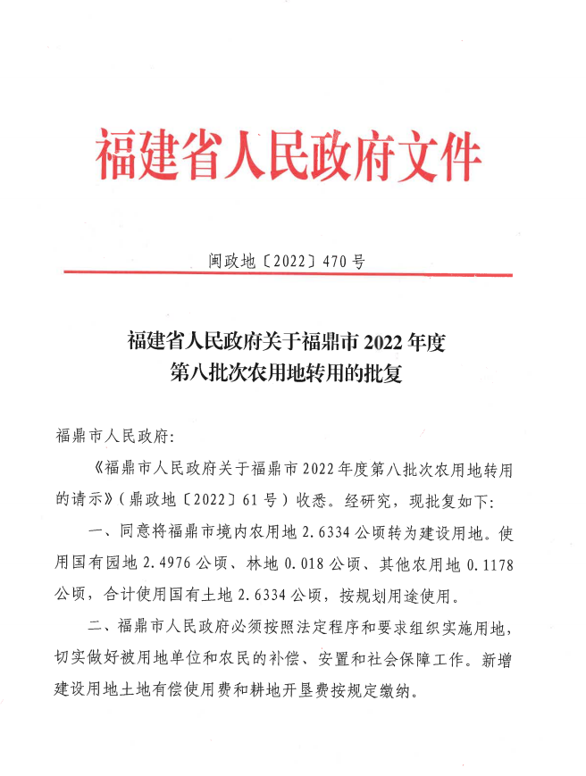 福建省人民政府关于beat365网页登录_365bet官网备用网站_365betvip2022年度第八批次农用地转用的批复