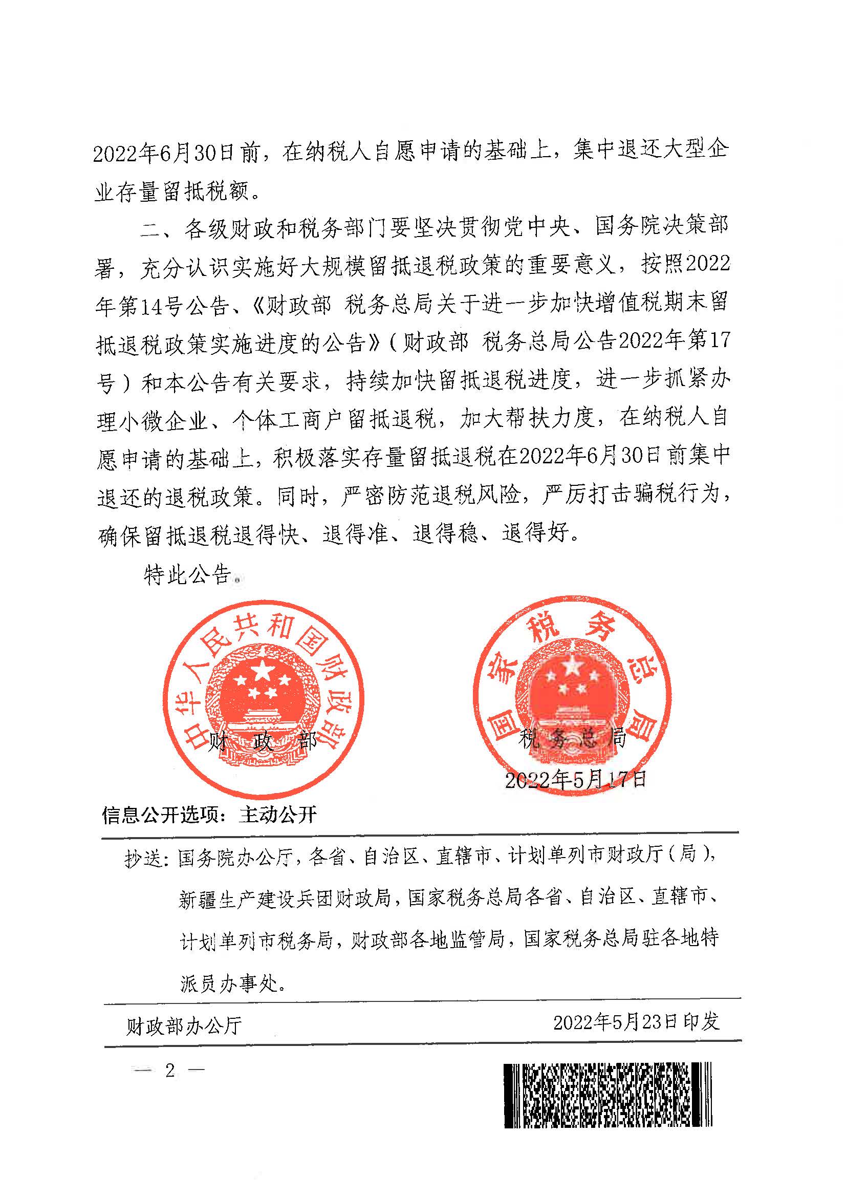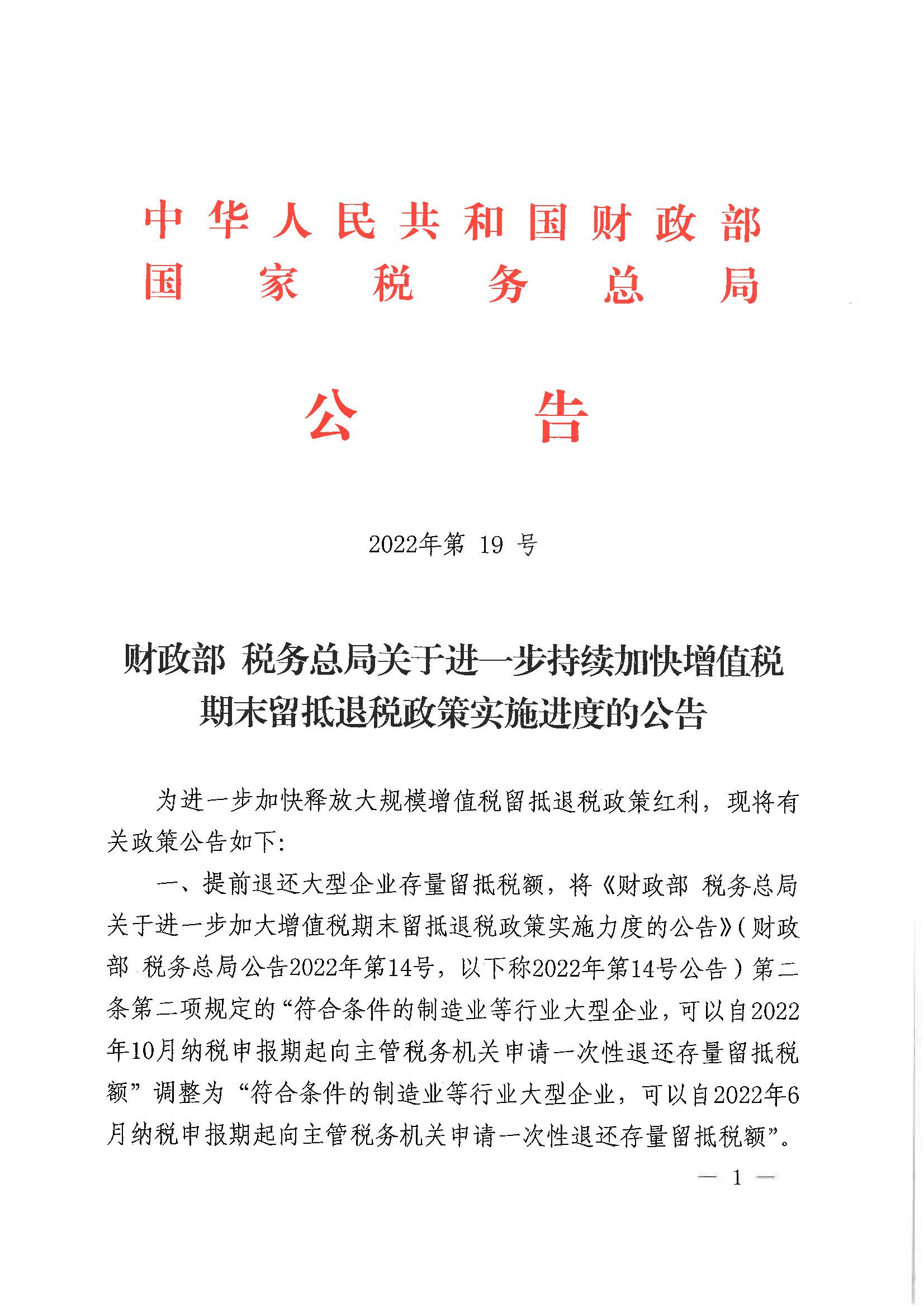 财政部税务总局关于进一步持续加快增值税期末留抵退税政策实施进度的公告