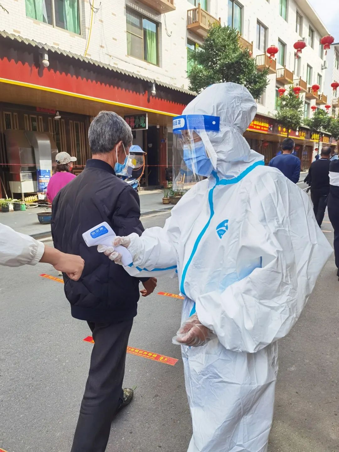 现场工作人员一遍一遍地提醒现场村民注意事项,各区域工作人员分工明确、密切配合,严格按照检测要求引导村民排好队,戴好口罩,测好体温,有序地进行核酸检测采样。