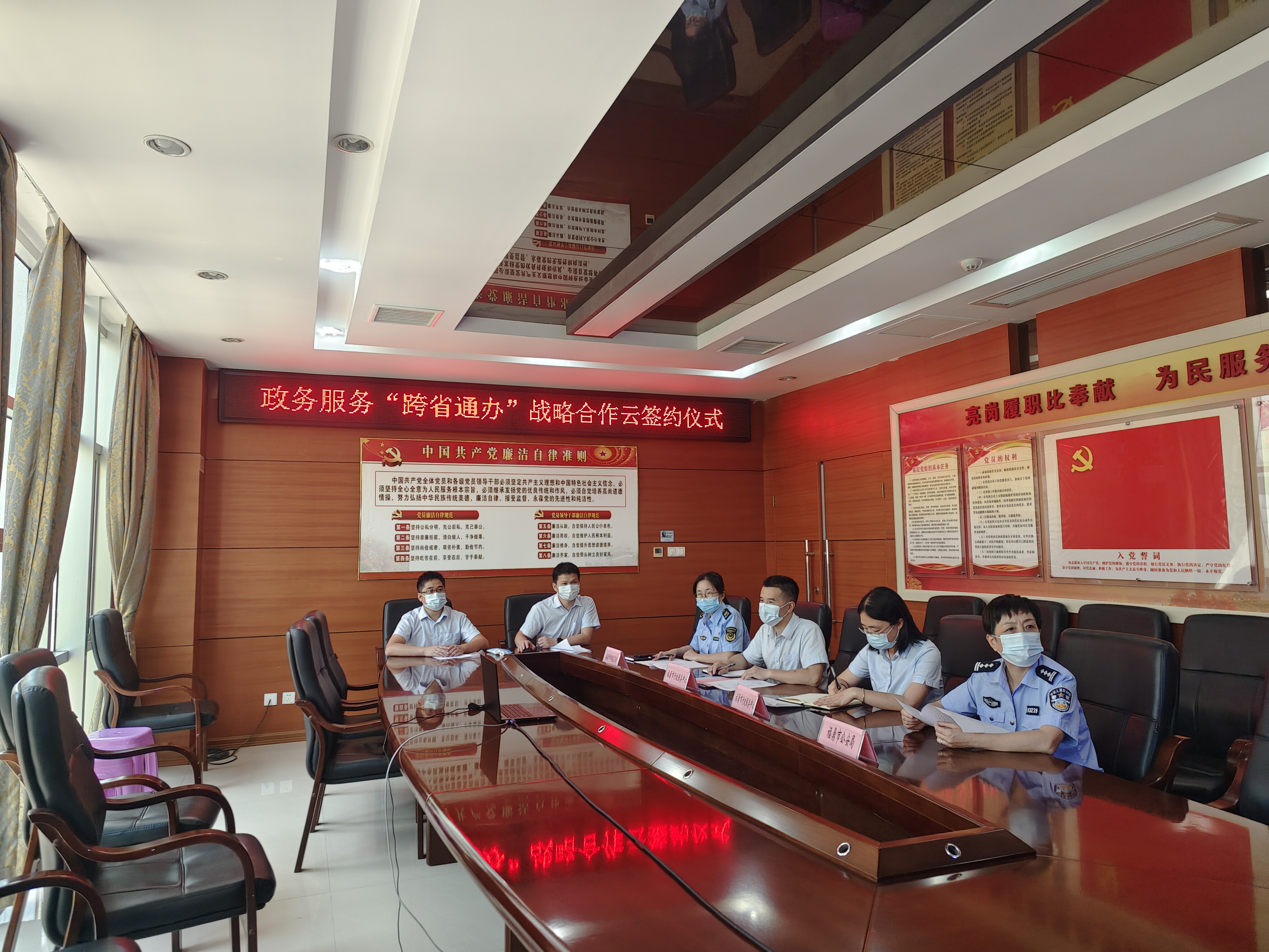 为进一步深化“放管服”改革、优化营商环境,7月7日上午,一场别开生面的“云签约”在市行政服务中心举行。来自全国不同省份的8个县(市、区)政务服务单位线上签约,结成“跨省通办”战略合作伙伴关系,开启政务服务合作新模式。