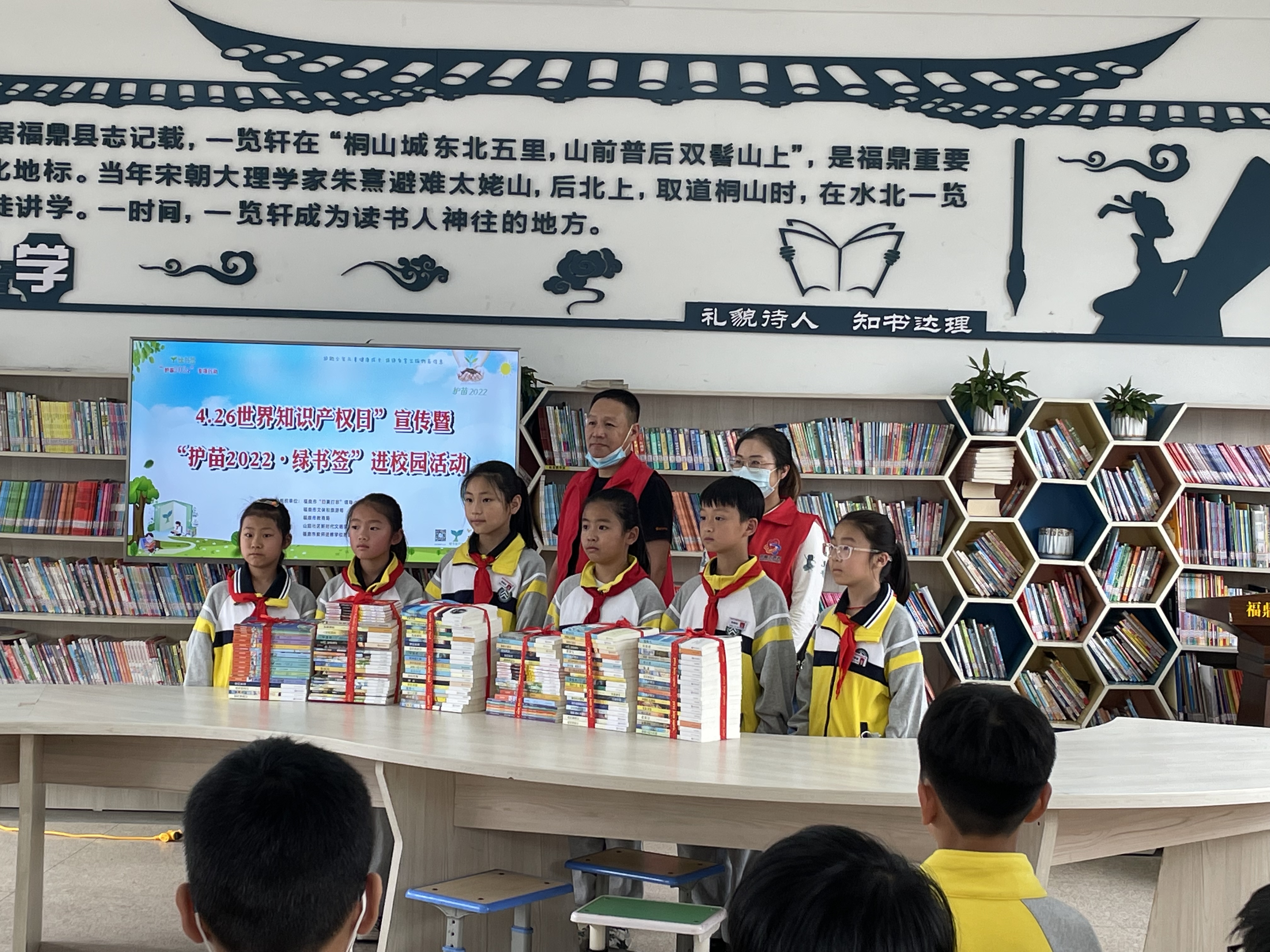 4月26日,beat365网页登录_365bet官网备用网站_365betvip“扫黄打非”办联合市教育局、山前街道办事处、山前社区新时代文明实践站等单位在beat365网页登录_365bet官网备用网站_365betvip教师进修学校附属小学开展以“抵制非法出版物,倡导绿色阅读,共创书香福鼎世界”为主题的“4.26世界知识产权日”宣传暨“护苗2022·绿书签”进校园活动。在山前社区及学校内设置“扫黄打非”宣传栏、张贴宣传海报,通过建立校园护苗工作站将“护苗”工作与教育管理工作有机融合,发挥“扫黄打非”工作站示范点在社区、在学校等基层阵地的作用,推动“护苗”与学校德育教育、“开学第一课”相结合,有效开展“护苗·开学季”“护苗·绿书签”“护苗·网络安全进校园”等活动。